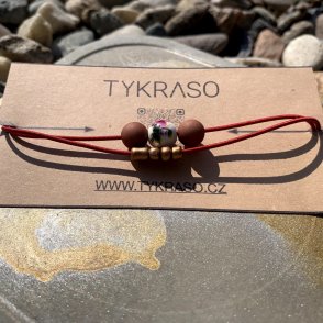 Tenhle setík je ze dvou kusů. První gumka je navlečená z matných světle hnědých korálků a jednoho porcelánového korálku s motivem růže. Růže je známa jako elegantní květina, která může mít mnoho významů. Pro mě je jsou hlavně znakem lásky a zamilovanosti.