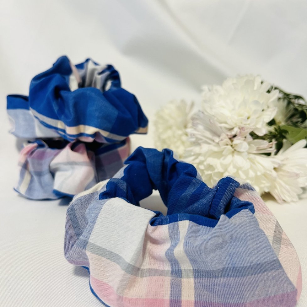 Gumička, která netahá ani neláme vlasy. Bavlněná gumička upcyklovaná z původní pánské košile. Kombinuj ji i s jinými barvami.