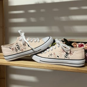 Růžové ručně vyšívané tenisky velikost 38. Jediný originální kousek, který najdeš pouze na eshopu TYKRÁSO. Upcyklované tenisky pro tvůj outfit.